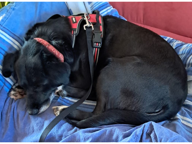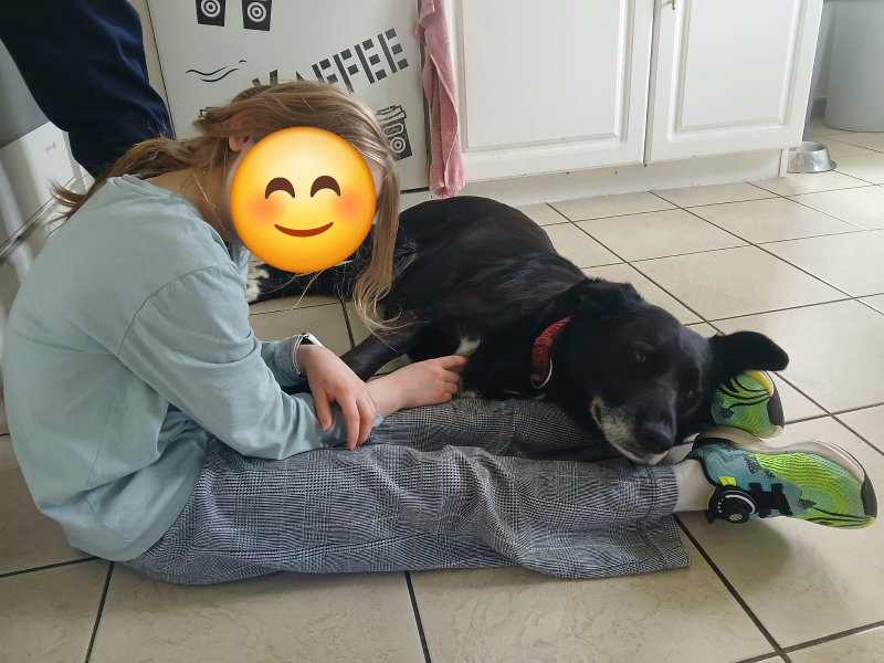 April macht gute Fortschritte. Mittlerweile geht sie die Trepprn alleine. Im Haus ist sie ruhig und sauber, meldet sich, wenn sie raus muß. Nur mit dem an der Leine laufen hat sie noch immer ihre Schwierigkeiten. Sie ist ein Haushund, ruhig und gemütlich, eher für ein rüstiges Rentnerehepaar geeignet. Bei zu viel Trubel geht sie in ihr Körbchen oder auf die Couch. Nachts schläft sie alleine im Wohnzimmer. Sie lässt sich gut abrufen, unsere Hühner 🫣 hat sie schon versucht zu fangen.