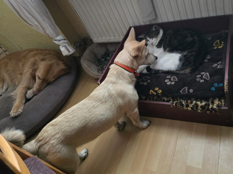 Leni ist nun das letzte Mädchen das noch kein Zuhause gefunden hat. Sie ist zwar sehr aktiv und wissbegierig, aber auch sehr anhänglich wenn sie einen mal kennt. Unsere Katzen jagd sie, bis auf 2 mit denen sie gut auskommt. Deshalb kann man nicht generell sagen ob es mit Katzen klappt. Leni hat auf der Pflegestelle schon sehr viel gelernt und beherrscht auch schon ein paar Tricks. Jemand der evtl. Agility machen möchte oder auch gern Tricks einübt, hat mit Leni bestimmt eine super Begleiterin. Die pfiffige Kleine ist auf keinen Fall etwas für gemütliche Leute, die nur gern mit dem Hund spazieren gehen. Leni mag Aktion 😅