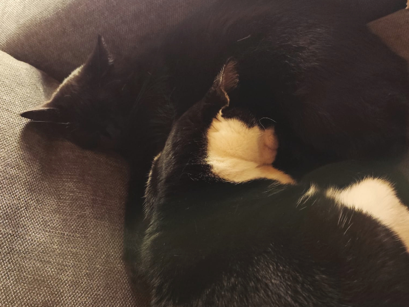 Nelly (schwarz-weiß) und Rocky (schwarz) wurden wegen Trennung ihrer Besitzer bei uns abgegeben.